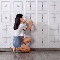 Peel and Stick Papier peint mural étanche Autocollants muraux en mousse 3D pour chambre cuisine salon toilette décoration de plafond