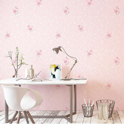 北欧の素朴な田舎のビニール防水ブルーイエローフローラル壁紙ピンク3D室内装飾寝室のリビングルーム